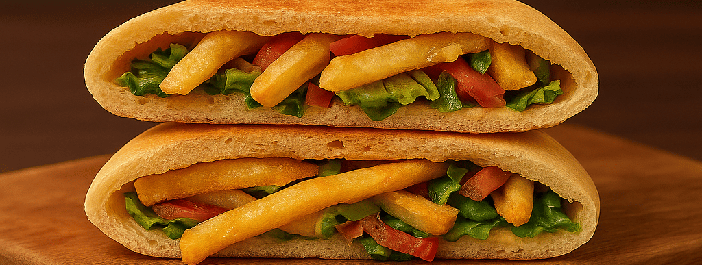 سندويتش بطاطس مقليه بالجبنة الرومي