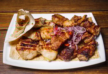 جميع الوجبــات تقدم مع أرز + سلطة + شوربة لسان عصفور